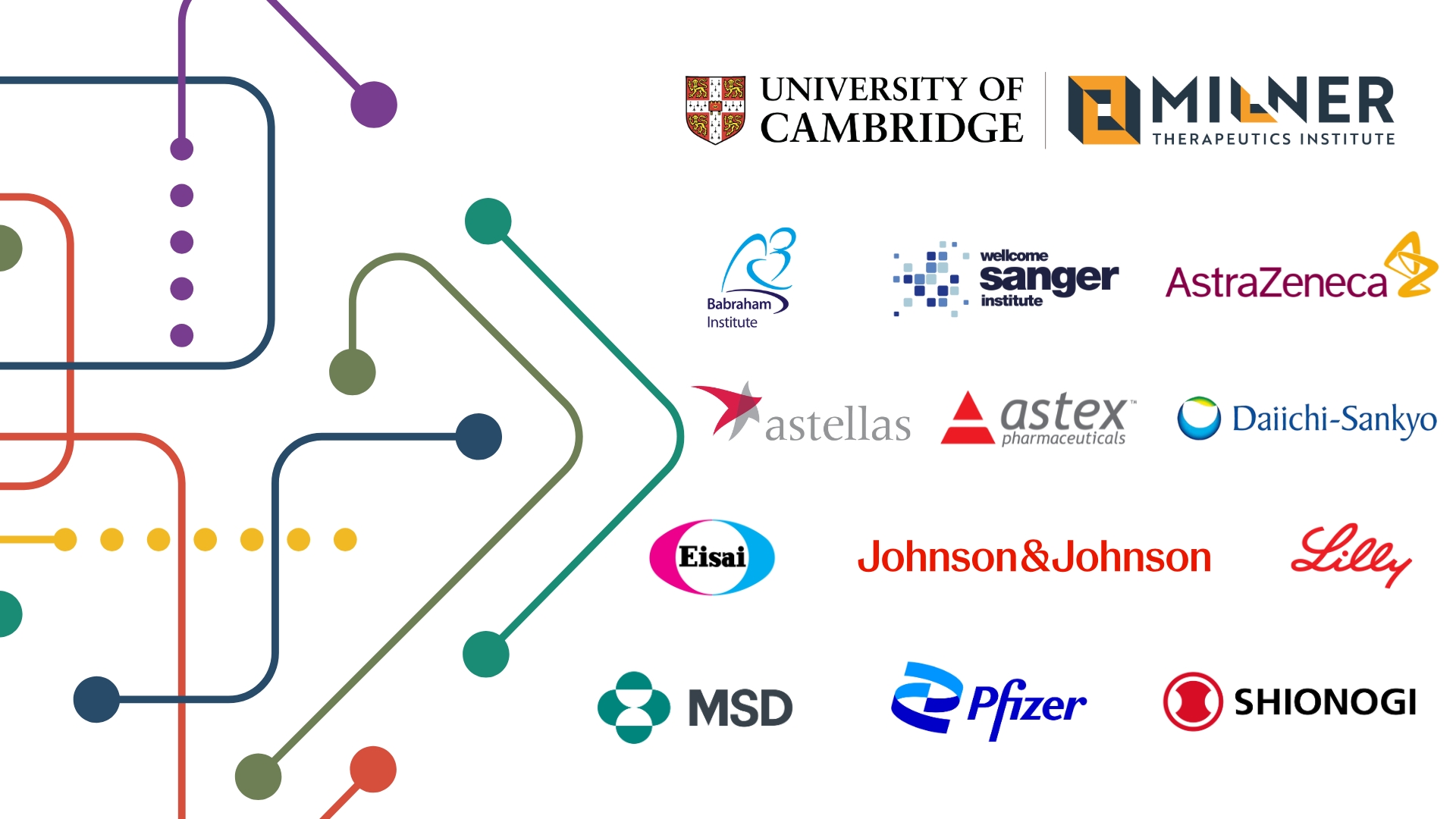 Our pharma partners in the Milner Therapeutics Consortium work together with academics at the University, Babraham and Wellcome Sanger Institutes to better understand disease mechanisms and to discover and validate new therapeutic targets. These pre-clinical projects range from reagent sharing and 6-month pilots to 2-year postdoctoral funded collaborations and are expected to lead to joint publications with the company partners.